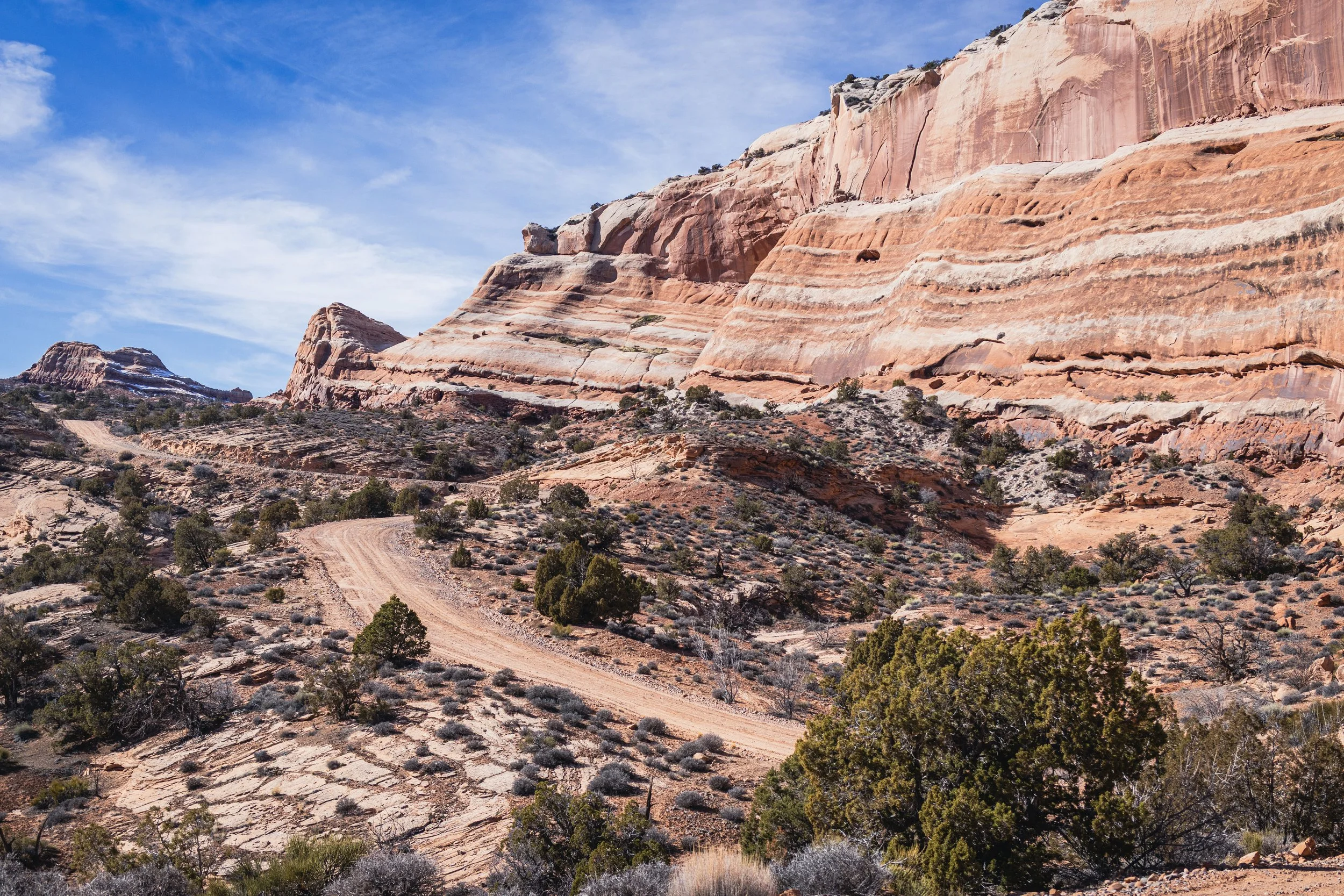 Once you’ve resupplied at the Gateway store you’ll leave town on CR42 leading you towards Sheep Creek Trail. This is a 3000ft jeep road climb that lasts just over 6mi. After reaching the top of this climb you’ll start to head W/NW towards Dewey Bridge. After traversing a bunch of dirt road miles you’ll eventually come to the Dolores River at which point you’ll have to cross. Depending on water flows we’ll pick one of two locations to cross. If flows are just too high for a safe portage, we’ll reroute a completely different route from Gateway, but hopefully it doesn’t come to this. Once you’ve crossed the Dolores it’s just a handful of miles to Dewey Bridge.